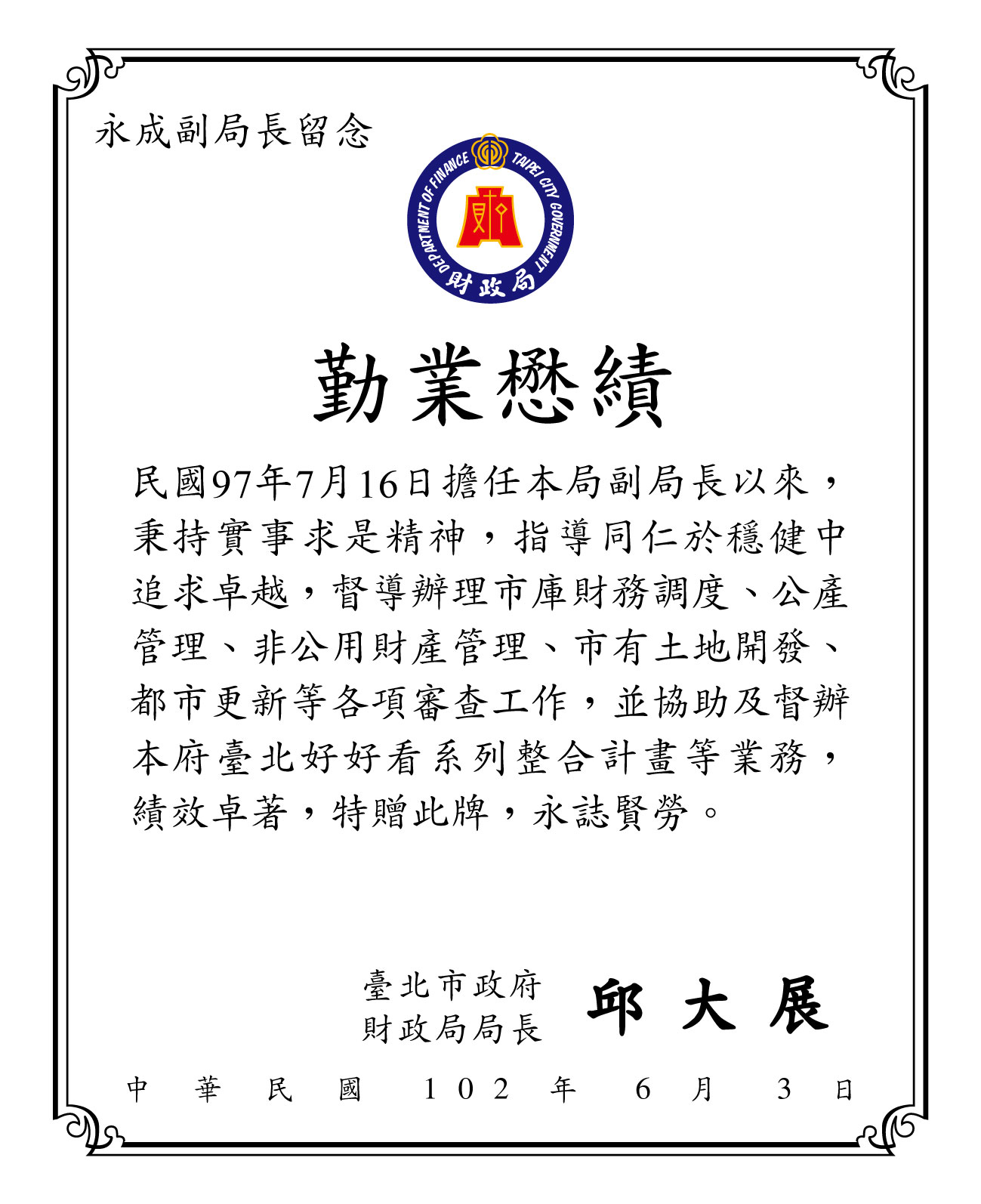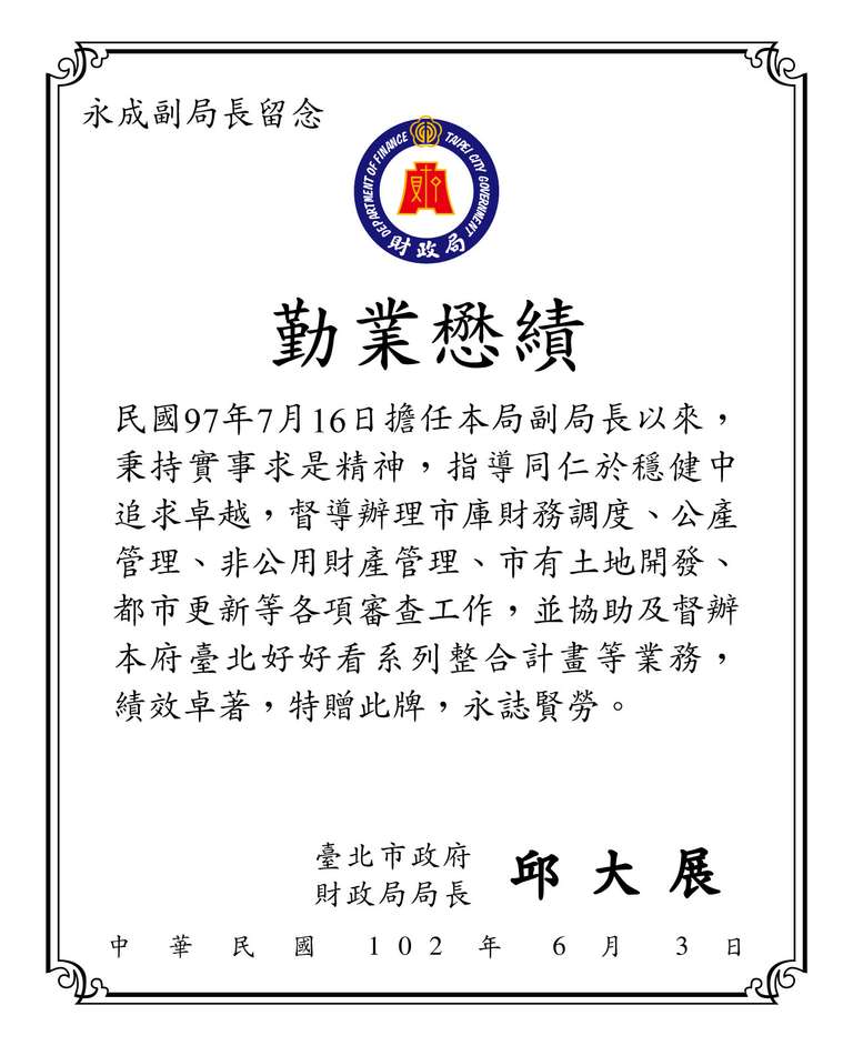台北市政府財政局-獎牌訂做